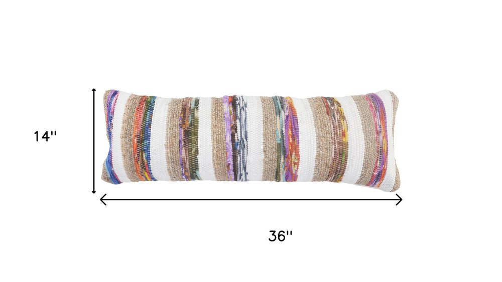 14" X 36" Tan White And Purple Lumbar Geometric Cotton Blend Throw Pillow Cover