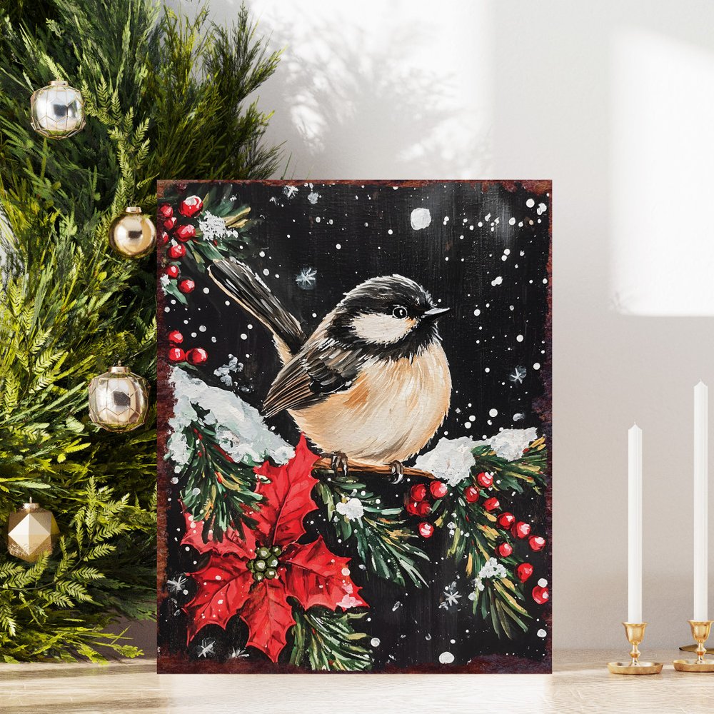 This 15-inch red white and green wood flowers christmas tabletop sign is a great way to celebrate and decorate for the holidays. Great to use on its own or mix with other decorations for the perfect look. Crafted with machine-made precision, this charming sculpture features delightful floral designs that evoke the festive spirit. The intricate chickadee replica adds a touch of whimsy, while the purposeful distressing enhances its rustic appeal. Perfect for animal lovers, this piece effortlessly combines the beauty of nature with holiday cheer. 15.00-inch h x 12.00-inch w x 2.00-inch d.