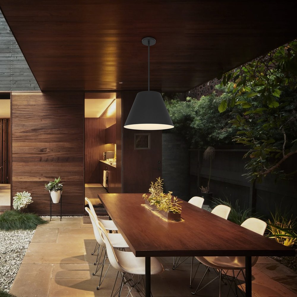 16" Black Aluminum Cone LED Dimmable Outdoor Pendent Hanging Light