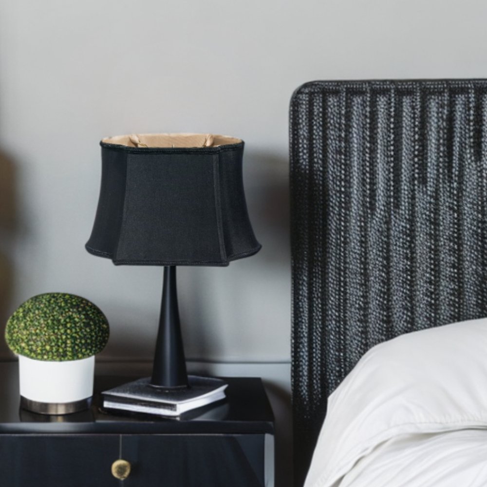 This 16" Black with Bronze Lining Premium Oblong Shantung Lampshade has a hint of traditional flair and will be a great addition to your lamp base. This fancy oblong softback lampshade includes a washer fitter that fits over a standard harp and can be used with your existing finial design. This high quality crafted oblong shape has a slight slant to give it some visual interest and is crafted of the finest shantung with a fold on top and bottom of the shade. 10" x 16" x 10"