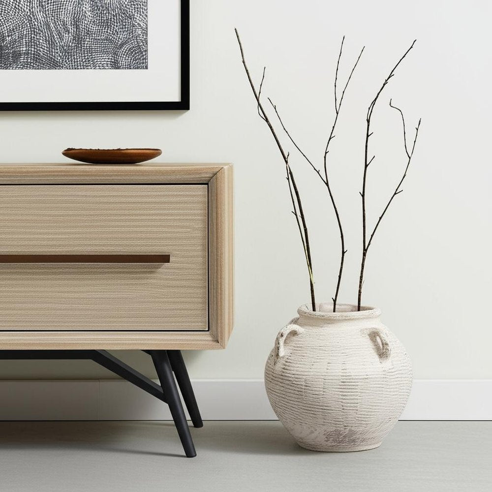 With or without flowers, this 16-inch cream ceramic amphora floor vase makes a great gift or decorative accent for your space. The unique amphora shape beautifully blends classic and modern aesthetics, making it a striking centerpiece in any room. Its purposeful coat and paint distressing adds a touch of vintage charm, ensuring that each piece tells its own story. Crafted from high-quality ceramic, this vase is designed to last, making it a perfect choice for both fresh and dried arrangements. Elevate your home decor with this stylish and functional piece that enhances your living environment effortlessly. 16.41-inch h x 19.69-inch w x 19.69-inch d.