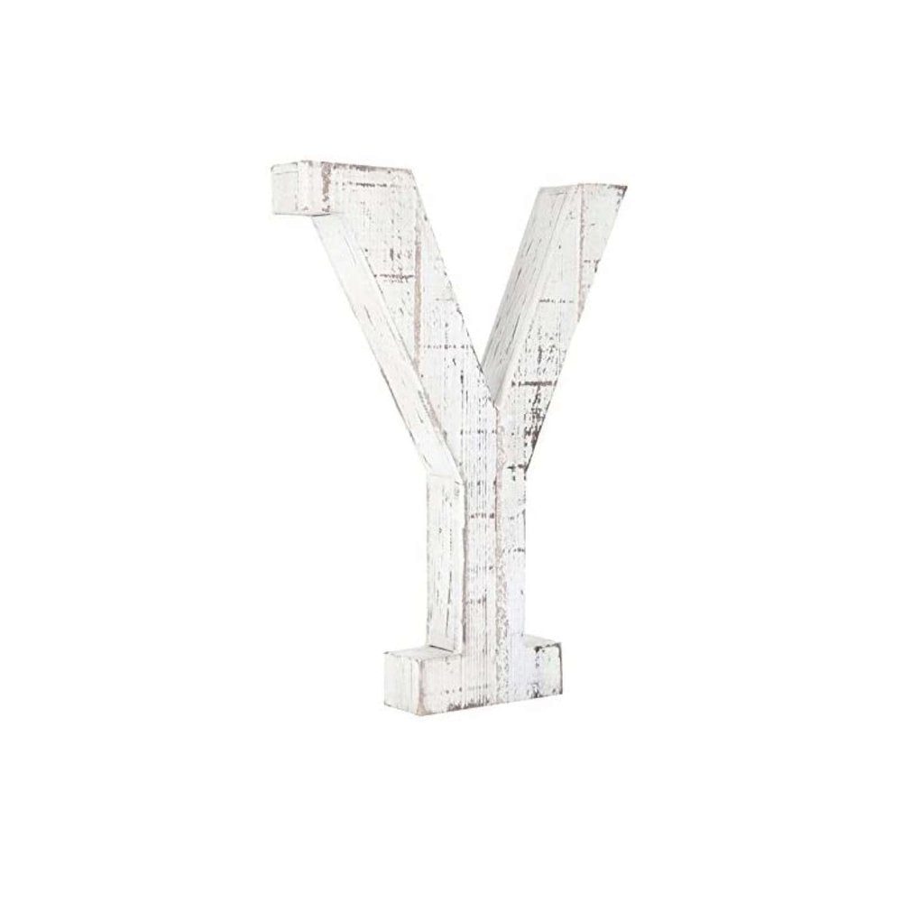 16" Distressed White Wash Wooden Initial Letter Y Sculpture