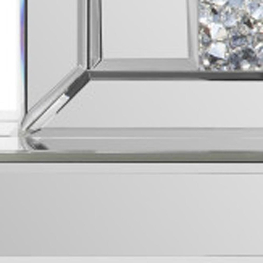 16" Silver And White Faux Crystal And Mirrored Glass Table Clock