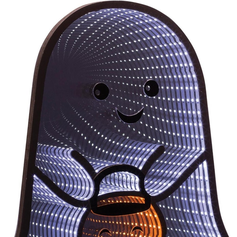Set a festive fall mood with this 16-inch white orange and black acrylic halloween ghost tabletop sign with led. Led light provides an illuminating effect that adds to the decorative appeal of this special piece. Great to use on its own or mix with other decorations for the perfect look. 16.25-inch h x 13.75-inch w x 2.75-inch d.