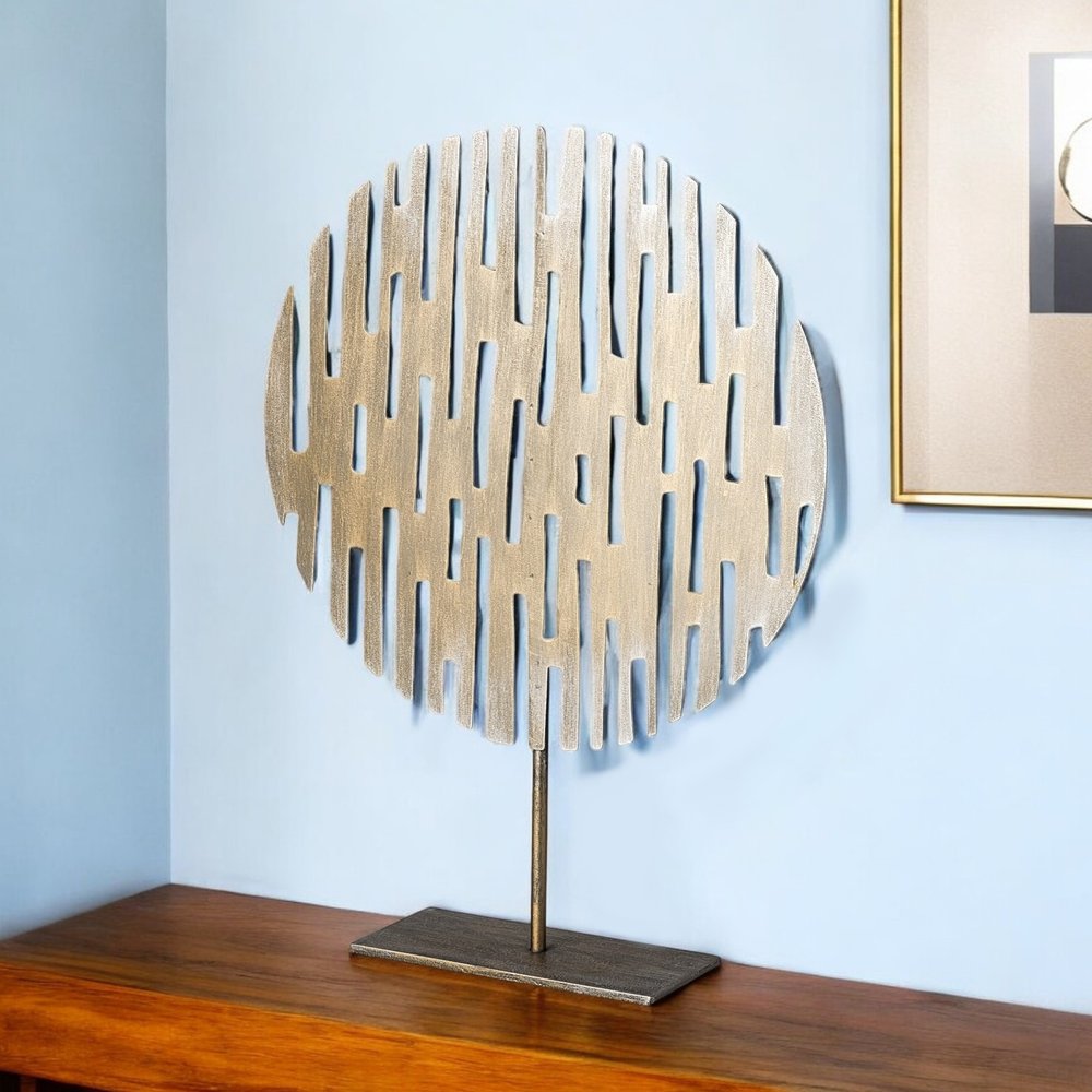 17" Antiqued Gold Round Disc Metal Tabletop Sculpture