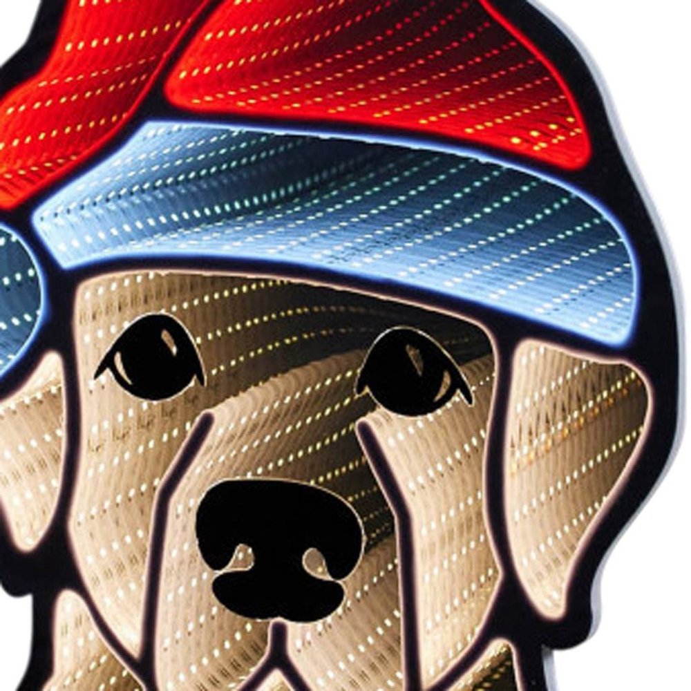 Add some christmas cheer to your space with this 17-inch beige and red acrylic dog christmas tabletop sign with led. This great dog accent is a great reminder of man's best friend. Led light provides an illuminating effect that adds to the decorative appeal of this special piece. Great to use on its own or mix with other decorations for the perfect look. 16.50-inch h x 12.50-inch w x 2.75-inch d.