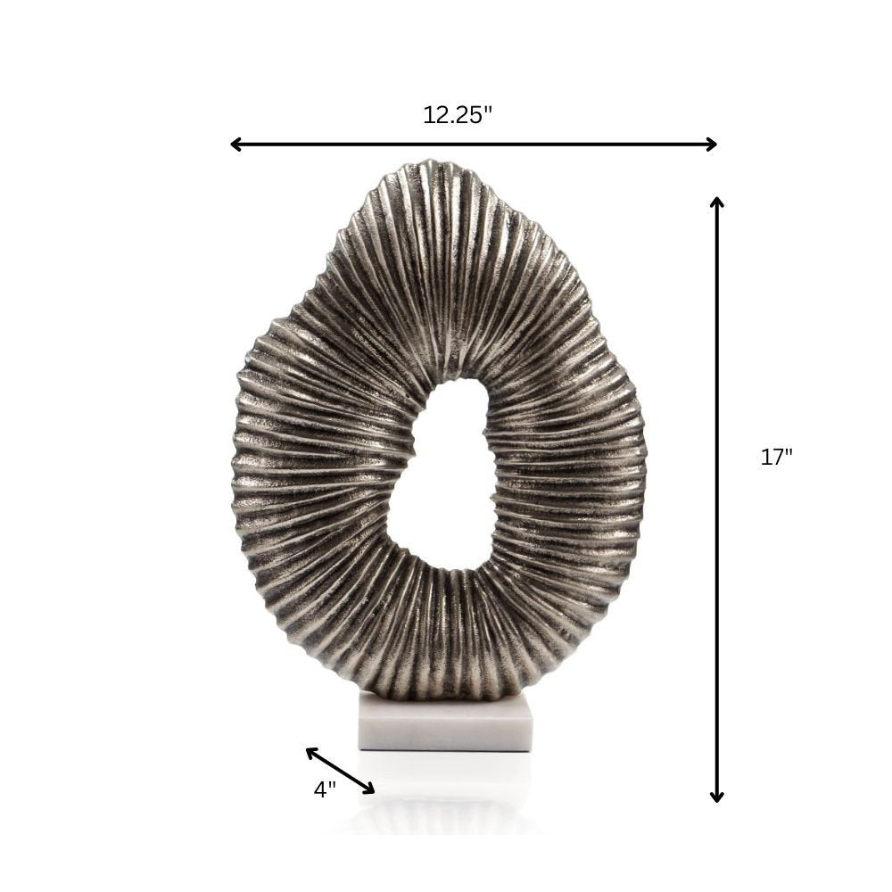 Add an air of fashion to your room and rejuvenate the space with this 17-inch silver and white aluminum and marble tabletop sculpture. A perfect decorative addition for anyone who loves a stylish look and feel. This hand-finished piece embodies modern design, effortlessly blending contemporary aesthetics with refined materials. The aluminum and marble construction creates a striking contrast that draws the eye, making it an ideal centerpiece for any tabletop. Elevate your home decor with this unique textural modern abtract sculpture that speaks to sophistication and artistic expression. 17-inch h x 12.25-inch w x 4-inch d.