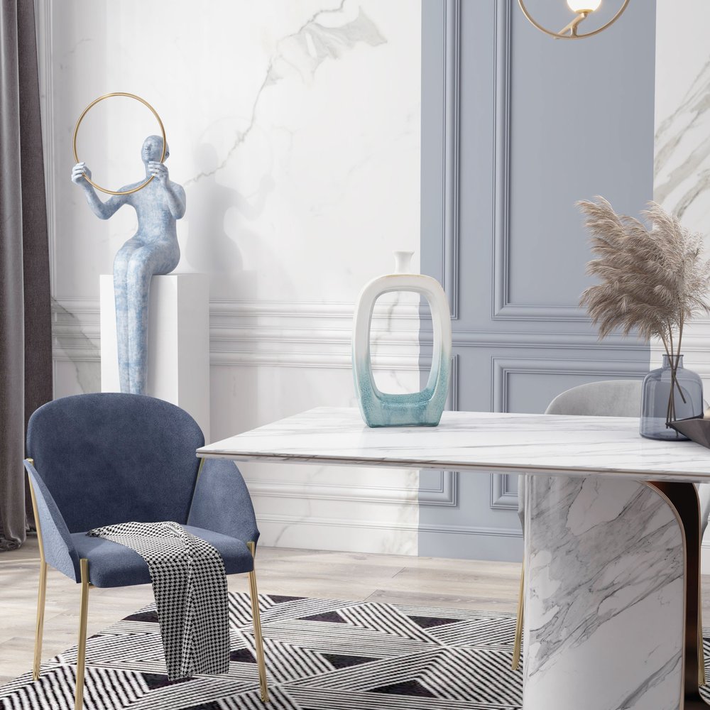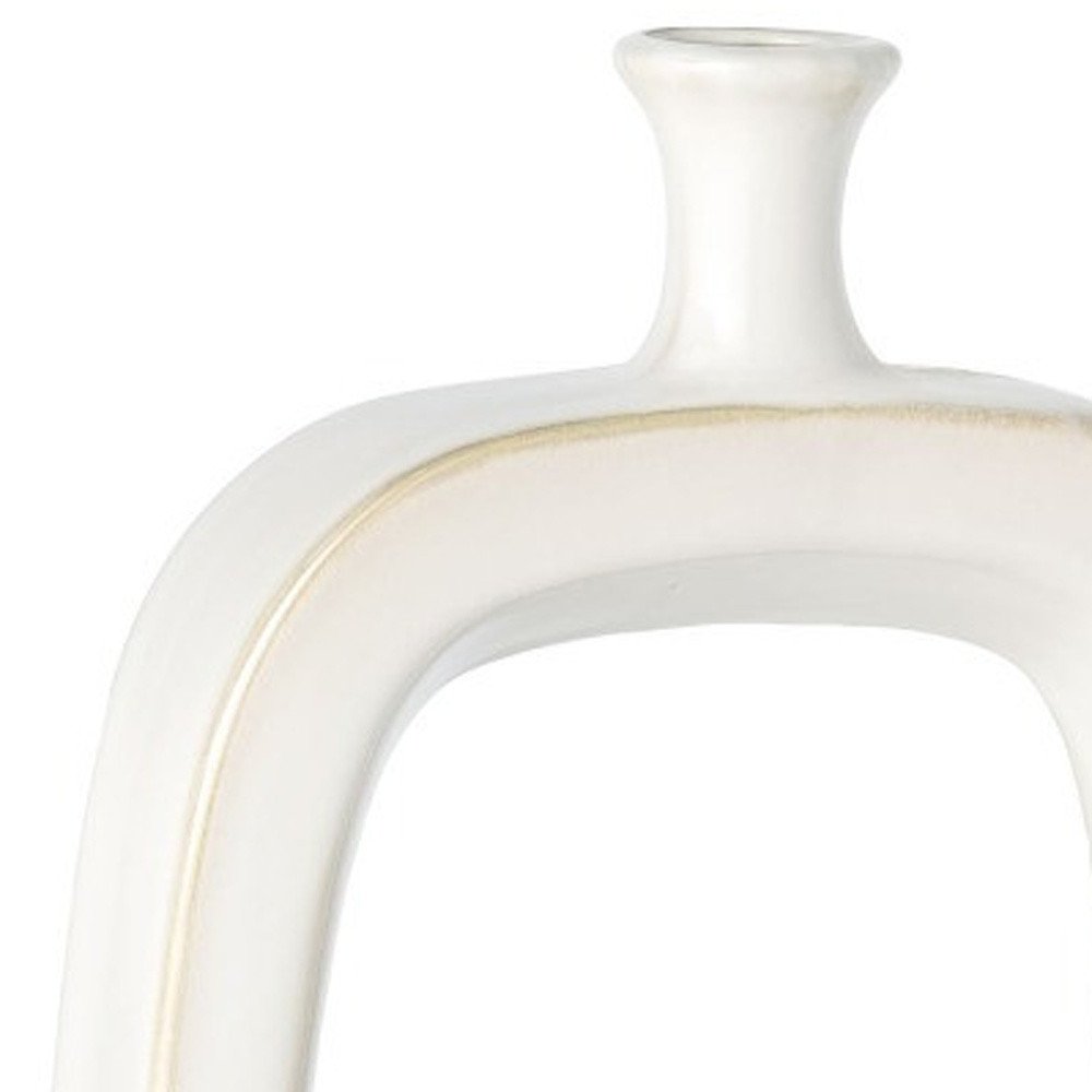 The 18-inch aqua blue and white ombre ceramic table vase is a stunning accent piece for your home. A unique hollowed out shape and tonal ombre finish creates a stunning vase that is also sculptural decor on its own with our without flowers. The modern style complements various decor themes, enhancing the overall aesthetic of your space. Purposeful distressing and a gorgeous reactive glaze adds color and design to this versatile accent. It can serve as a standalone piece or as a stylish container for fresh or dried flowers, elevating your home decor effortlessly. Whether placed on a dining table, living room shelf, or entryway console, this vase is a versatile accent that brings life and sophistication to your surroundings. 18-inch h x 10-inch w x 3-inch d.