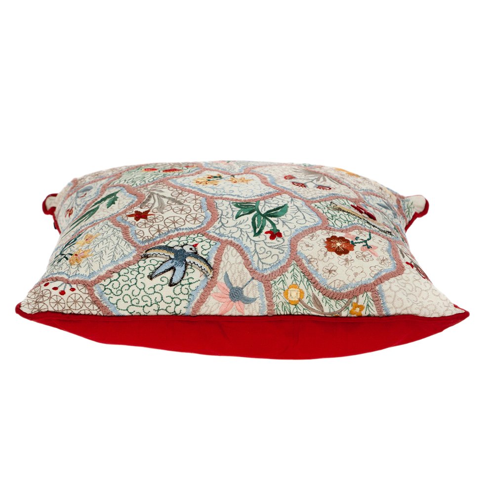 The perfect complement to your sofa, favorite chair, or bed, this 18-inch beige blue and green cotton throw pillow with embroidery is a great decorative accent. This beige blue and green colored decorative pillow is made from high grade cotton that is durable and long lasting. Embroidered decorative accents add some high end and hand-crafted textural designer touches. Super soft and built to hold its shape, this polyfill pillow is a great option. For anyone that loves to decorate or accent their space with color and texture. Decorative pillows are a great way to change up the look and feel of your space easily and quickly. 18-inch H x 18-inch W x 6-inch D