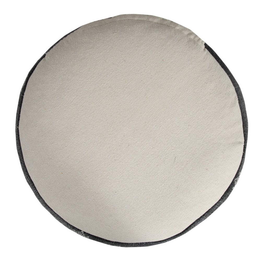 18" Black Cotton Cylinder Medallion Pouf Ottoman