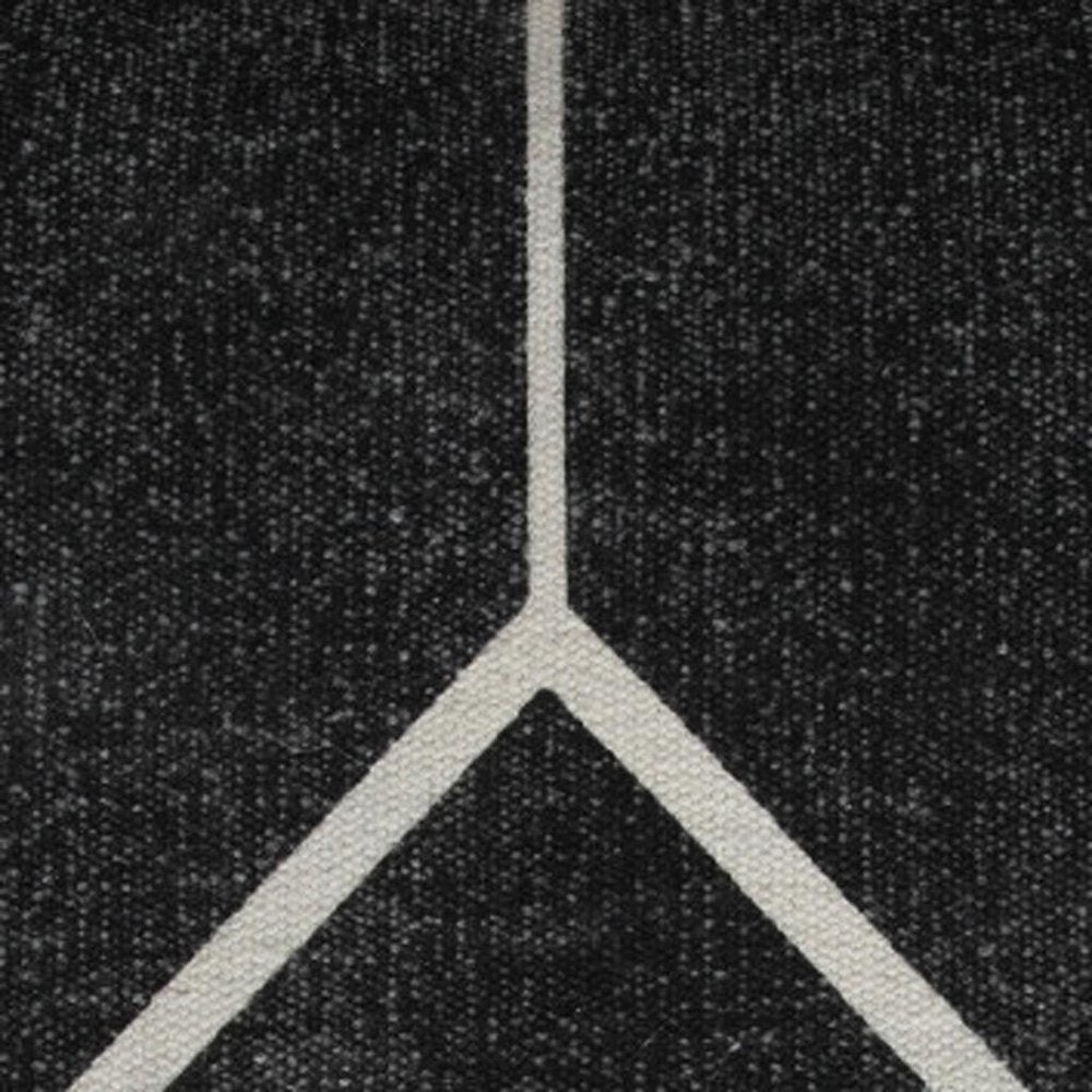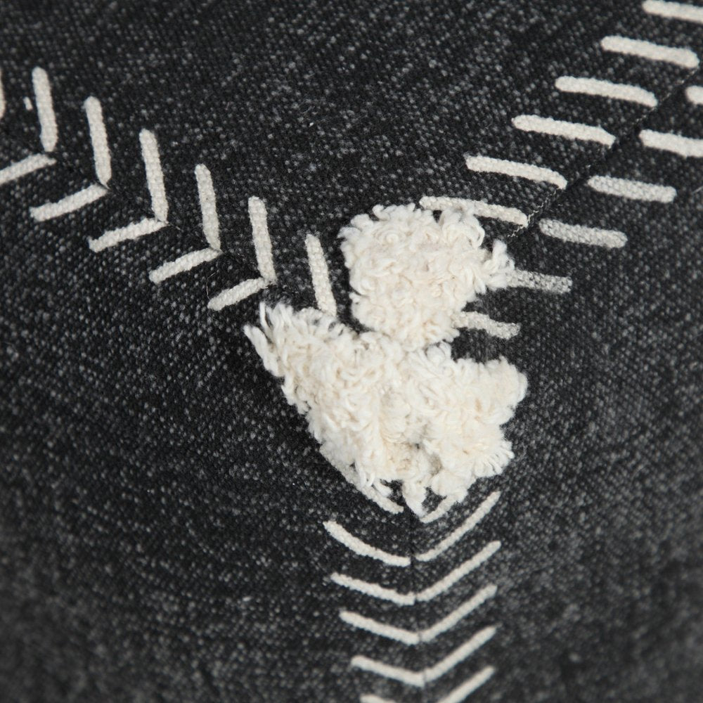 Get ready to relax with this 18-inch black cotton geometric pouf ottoman. Add chic style to your space with this fun pouf that not only looks cool but can be a great foot rest or extra seat when needed. Expertly upholstered with padding and soft 100% cotton in a geometric pattern, this ottoman is as comfortable as it is good looking. Easy to blend into most any room, a ottoman is a way to add a good looking accent to your space that can also be practical and useful. 14-inch h x 18-inch w x 18-inch d.