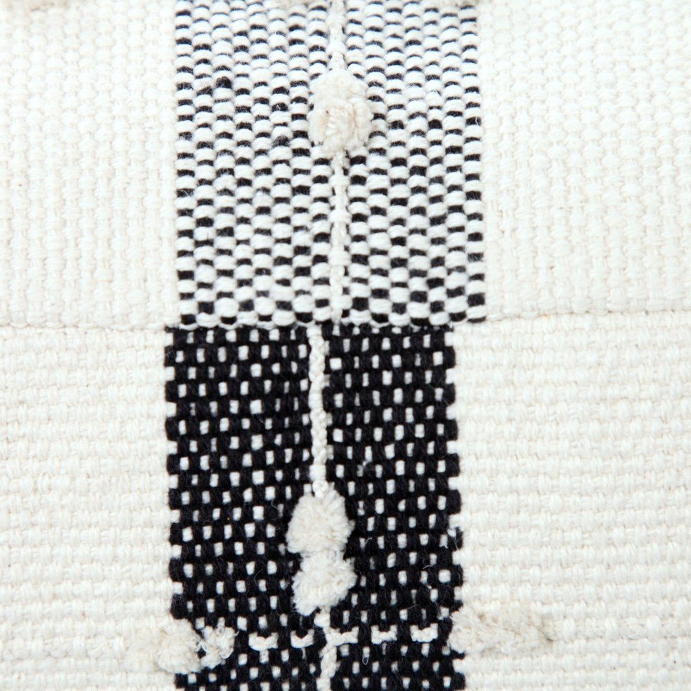 Add a good looking decorative accent to your space that is also practical for seating. Add chic style to your space with this fun pouf that not only looks cool but can be a great foot rest or extra seat when needed. Expertly upholstered with padding and soft 100% cotton in a striped pattern, this ottoman is as comfortable as it is good looking. Ottomans are multi-functional additions to your space that add fashion and practical value. 14-inch h x 18-inch w x 18-inch d.