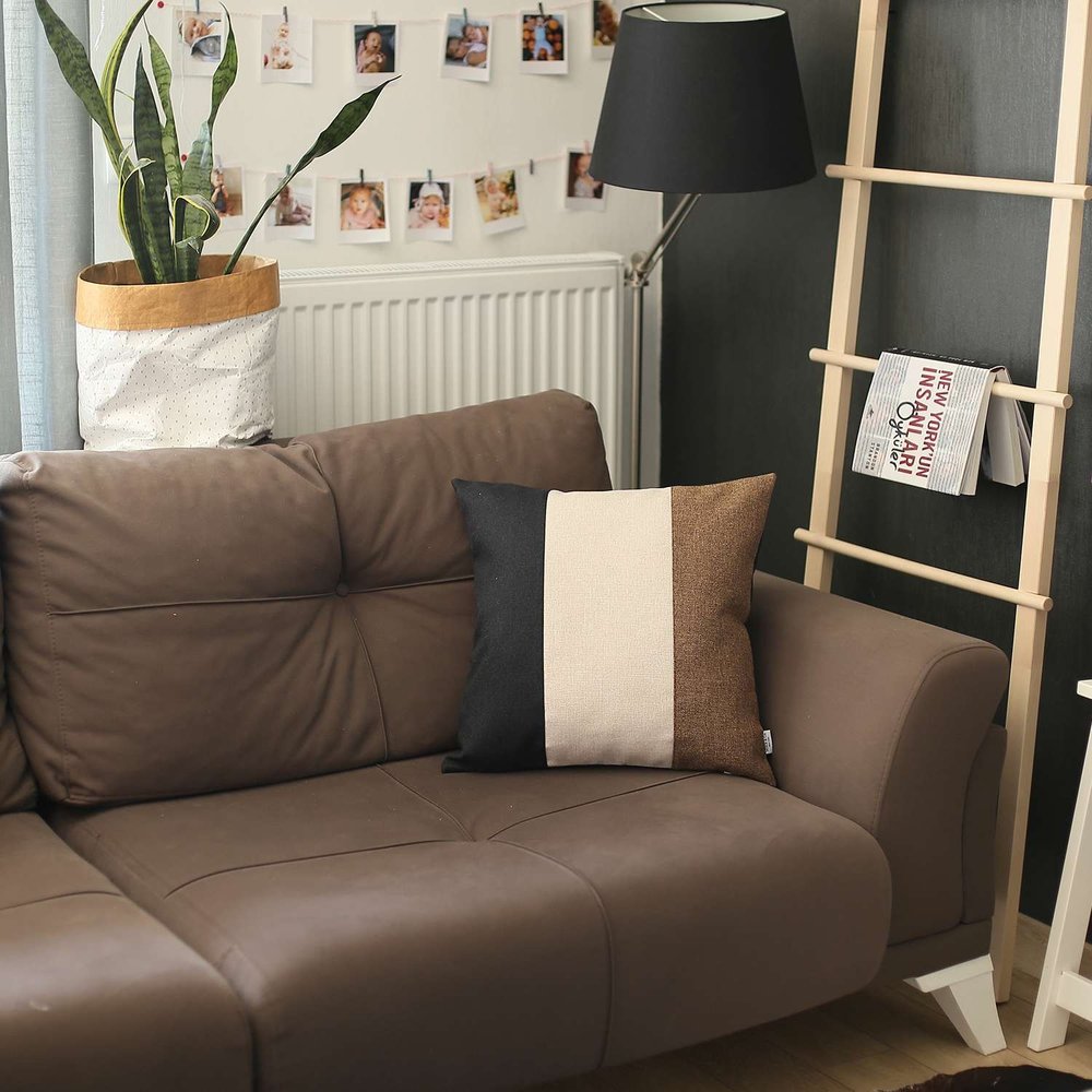 Unique and decorative, this comfortable 18-inch black ivory and brown fabric throw pillow will leave a lasting impression. Super soft and built to hold its shape, this polyester-filled pillow is a great option. Decorative pillows are a great way to change up the look and feel of your space easily and quickly. A great decorative accessory to add color and dimension to your favorite chair, accent your sofa, or to use as part of your bed ensemble. 18-inch h x 18-inch w x 1-inch d.