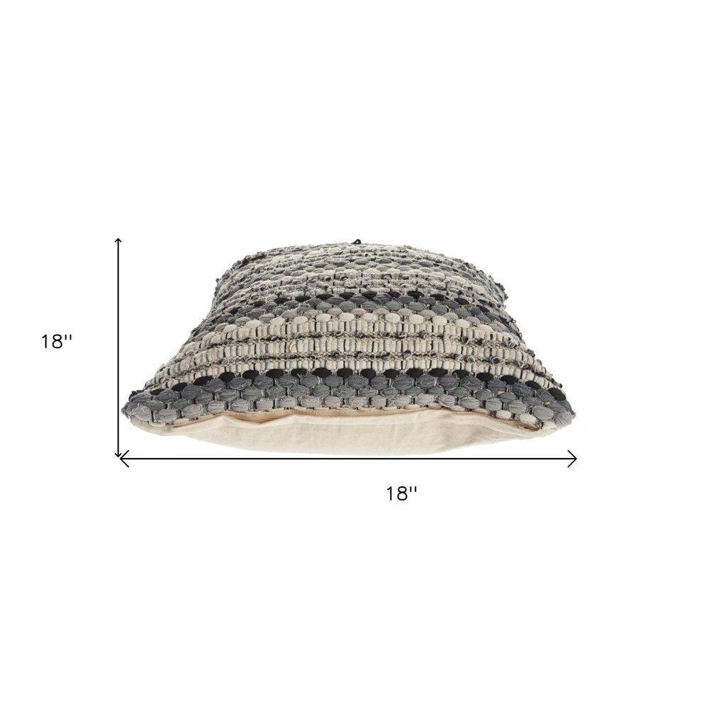 18" Blue And Green Cotton Striped Throw Pillow