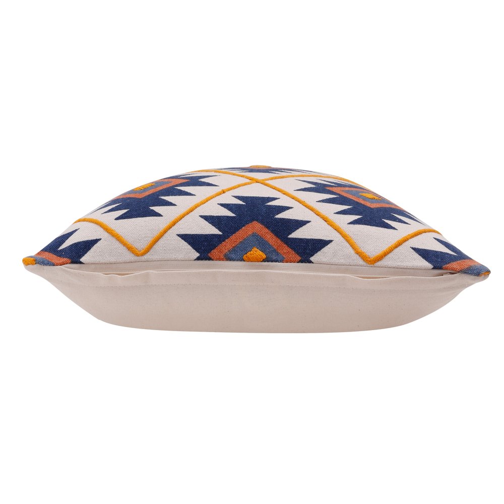 This 18-inch blue and orange geometric cotton throw pillow cover will add a beautiful decorative accent to your decor. This blue and orange hued, accent pillow cover, represents quality construction, expertly made from durable cotton that is not only long lasting but soft to the touch as well. Decorative pillow covers are a great way to change up the look and feel of your space easily and quickly. Combine with your own fill or insert to add decoration and dimension to your favorite chair, accent your sofa, or to use as part of your bed ensemble. 18.00-inch h x 18.00-inch w x 0.25-inch d.
