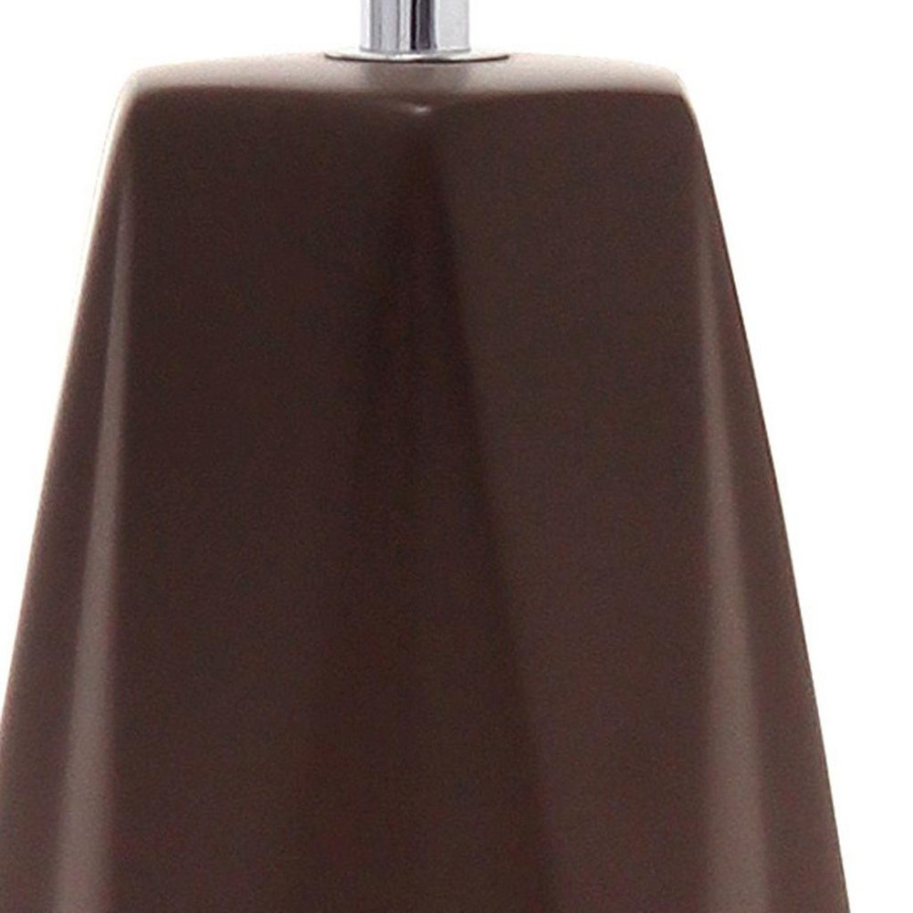 18" Brown And Silver Ceramic Geometric Table Lamp With White Drum Shade