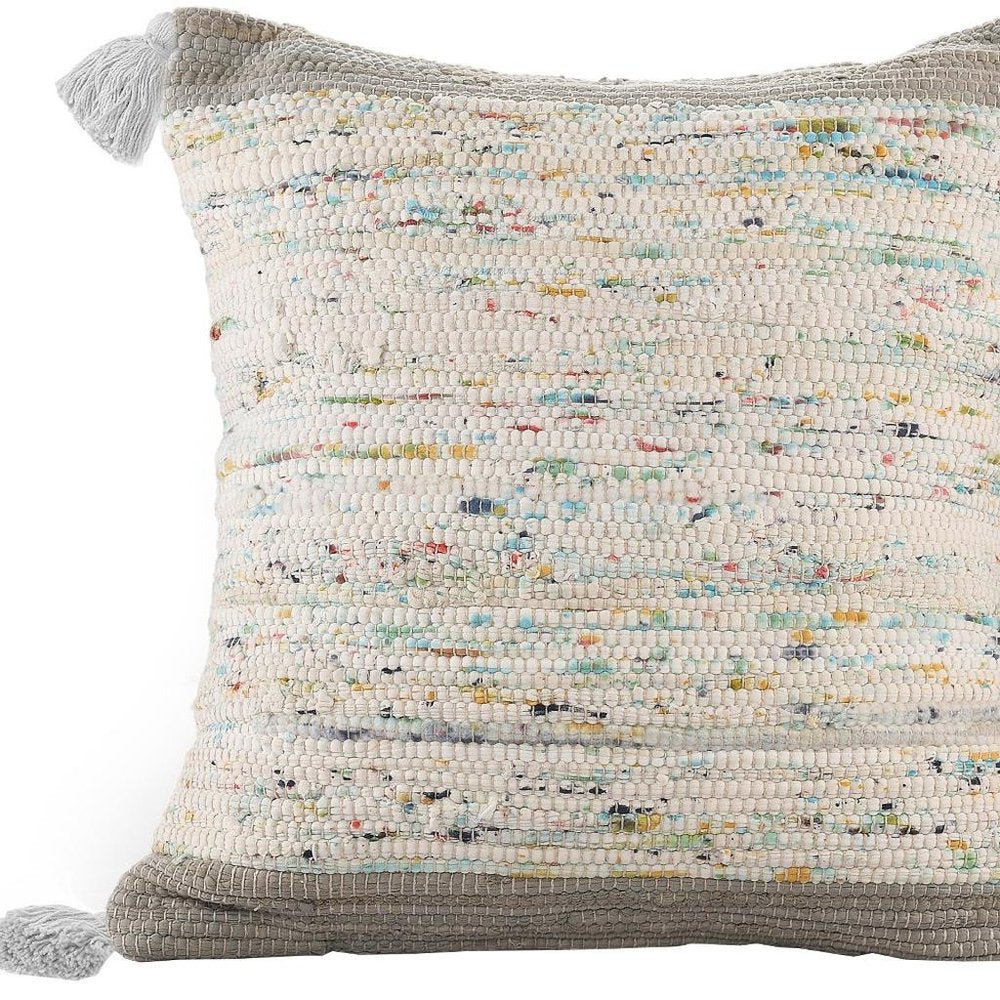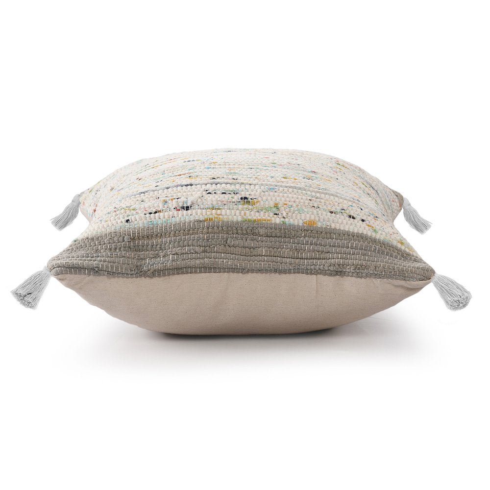 The perfect complement to your sofa, favorite chair, or bed, this 18-inch gray white and blue color block cotton throw pillow cover is a great decorative accent. This gray, white, and blue hued, accent pillow cover, represents quality construction, expertly made from durable cotton that is not only long lasting but soft to the touch as well. Pillow covers are a good idea for anyone that loves to decorate or accent their space with color and texture. Combine with your own fill or insert to add decoration and dimension to your favorite chair, accent your sofa, or to use as part of your bed ensemble. 18.00-inch h x 18.00-inch w x 0.25-inch d.