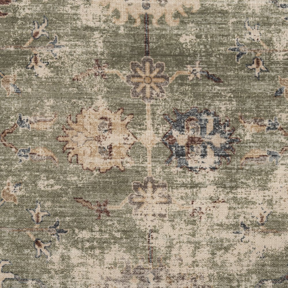 18" Ivory and Sage Upholstered Medallion Pouf Ottoman
