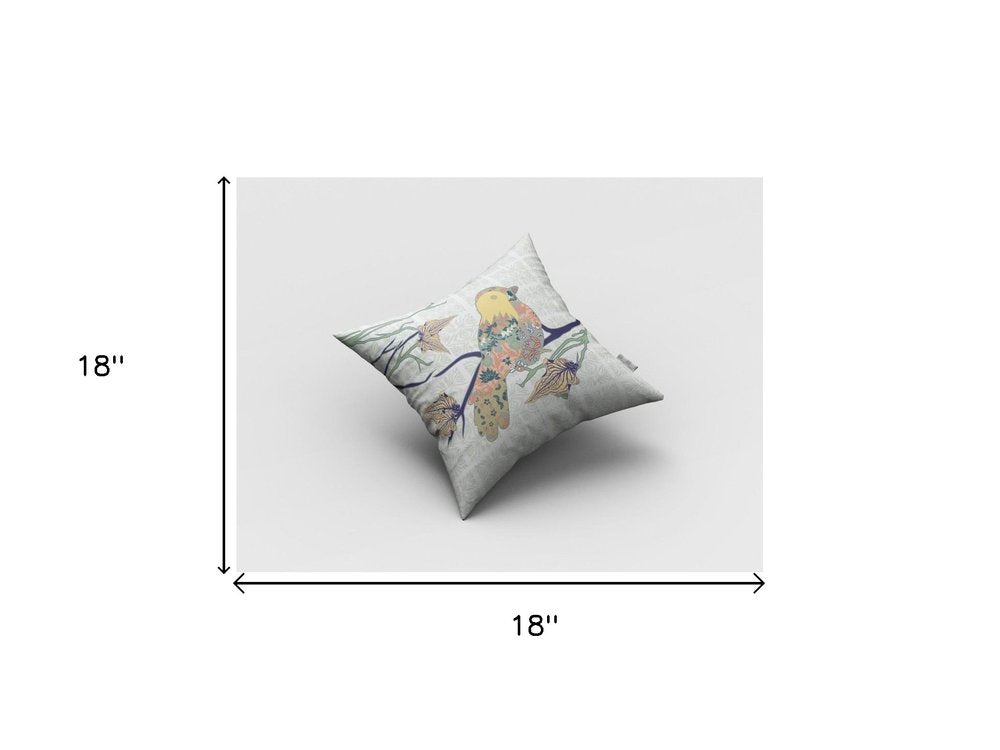18" Light Green Sparrow Zippered Suede Throw Pillow