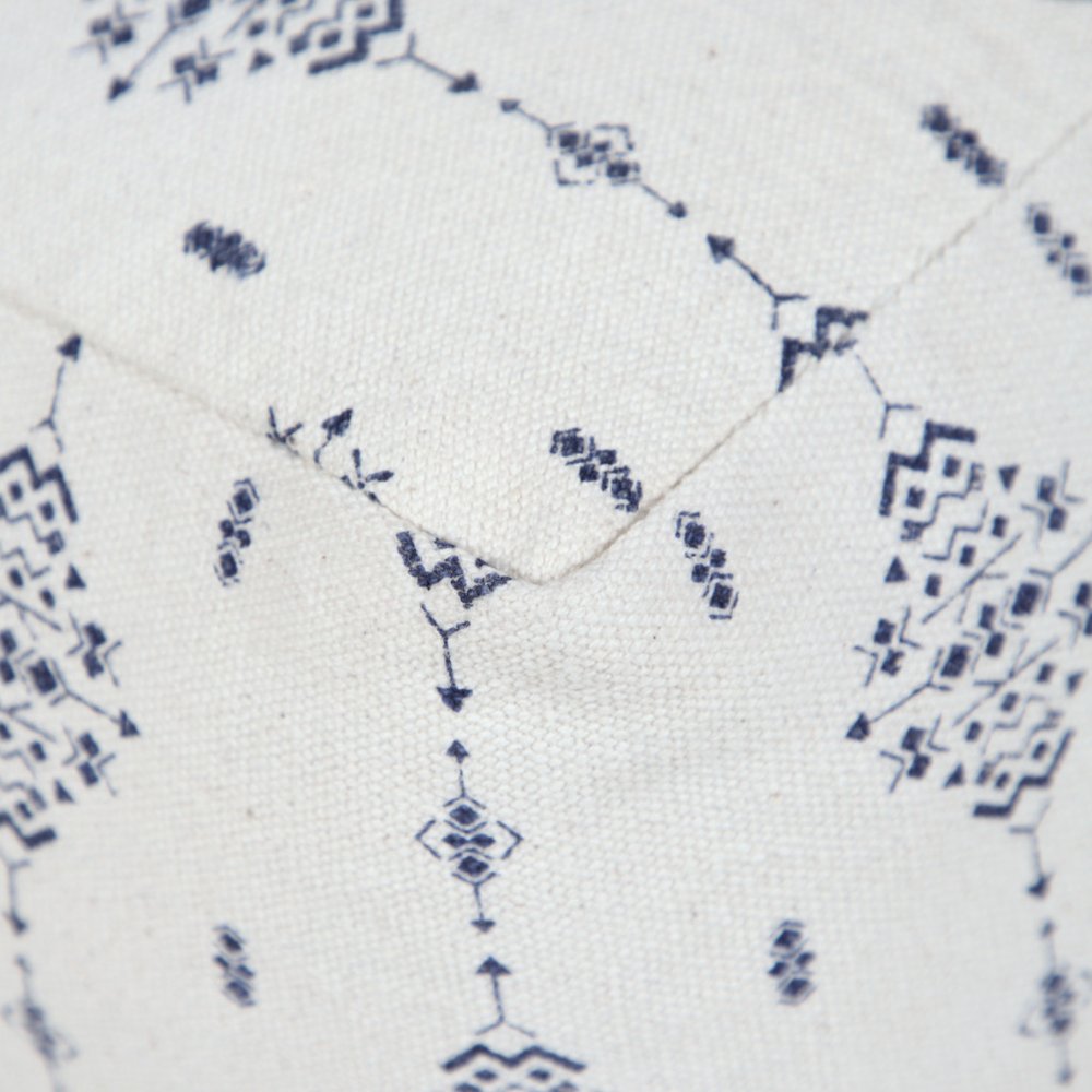 18" Natural And Navy Blue Cotton Medallion Pouf Ottoman
