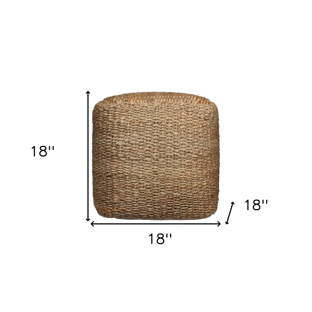 18" Natural Jute Woven Blend Cube Pouf Ottoman