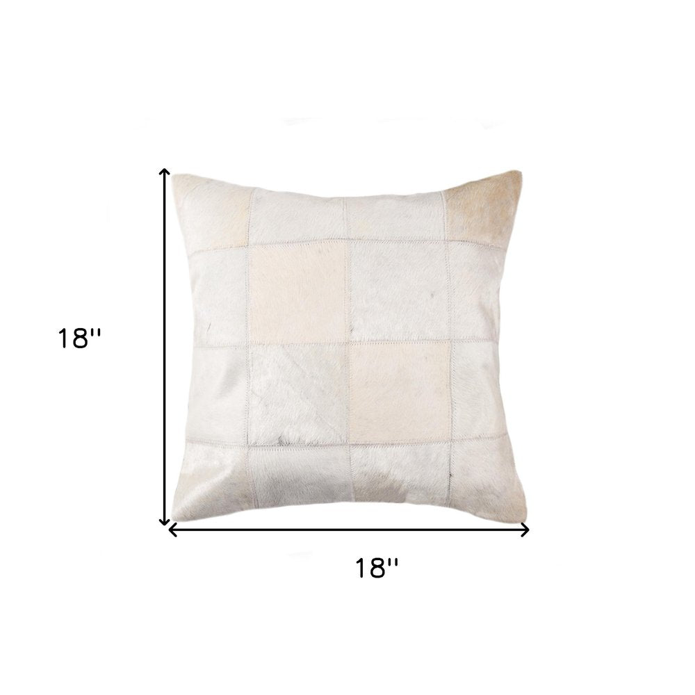 18" Off White Geometric Cowhide Throw Pillow