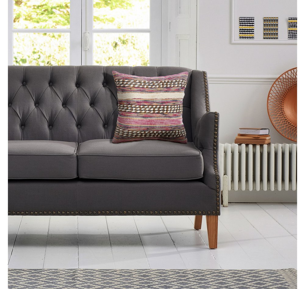 Add an air of fashion to your room and rejuvenate the space with this cute and fashionable 18-inch pink and ivory throw pillow. Durable pink and ivory cotton blend has been used to give this pillow a beautiful look that will stand the test of time. This soft polyfill filled pillow not only is decorative but made to be comfy and cozy all day long. Decorative pillows are a great way to change up the look and feel of your space easily and quickly. Decorative throw pillows not only add color and dimension to your space but can be comfy and supportive when you are lounging and cuddling as well. 18-inch h x 18-inch w x 6-inch d.