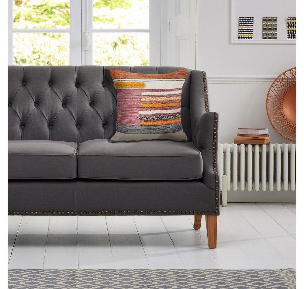 Add an air of fashion to your room and rejuvenate the space with this cute and fashionable 18-inch red and ivory throw pillow. This soft and durable decorative pillow is expertly made of high grade, long lasting cotton in a red and ivory coloration. This soft polyfill filled pillow not only is decorative but made to be comfy and cozy all day long. Great to use on its own or mix with other decorations for the perfect look. A great decorative accessory to add color and dimension to your favorite chair, accent your sofa, or to use as part of your bed ensemble. 18-inch h x 18-inch w x 6-inch d.