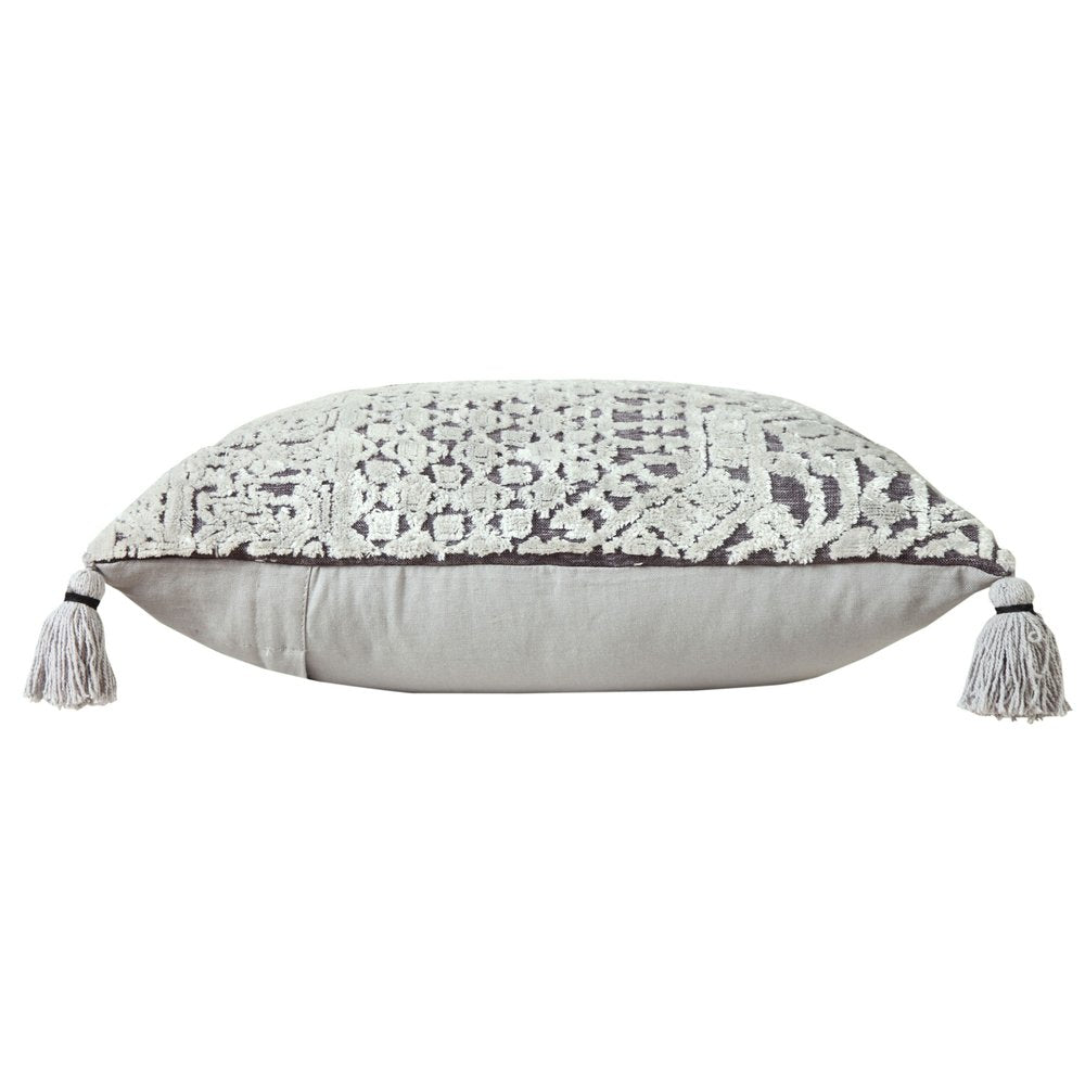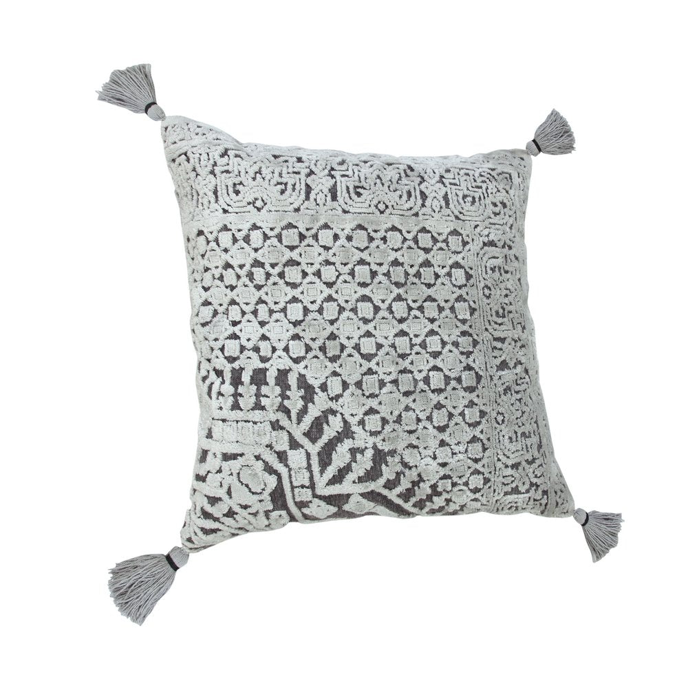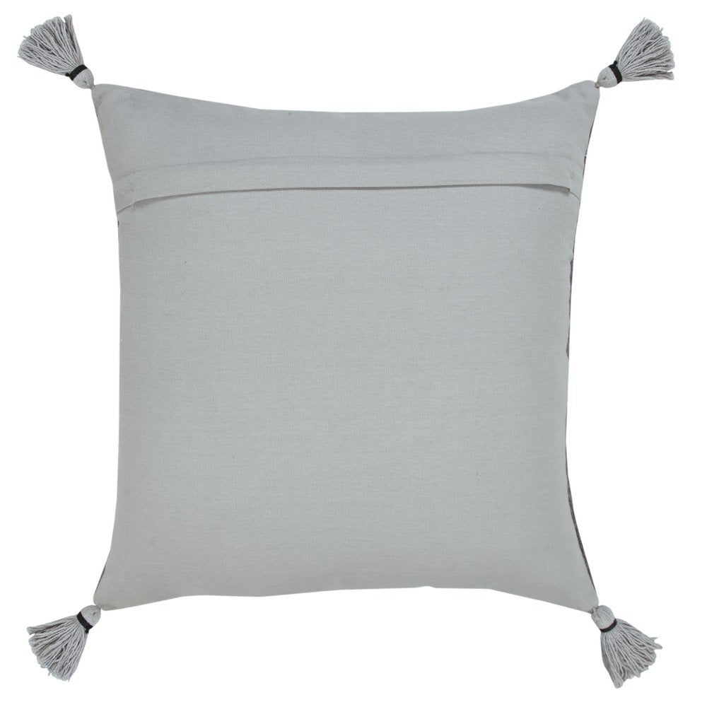 This 18-inch silver and gray geometric viscose throw pillow cover will add a beautiful decorative accent to your decor. This soft and durable decorative pillow cover is expertly made of high grade, long lasting viscose in a silver and gray coloration. Decorative pillow covers are a great way to change up the look and feel of your space easily and quickly. Combine with your own fill or insert to add decoration and dimension to your favorite chair, accent your sofa, or to use as part of your bed ensemble. 18.00-inch h x 18.00-inch w x 0.25-inch d.