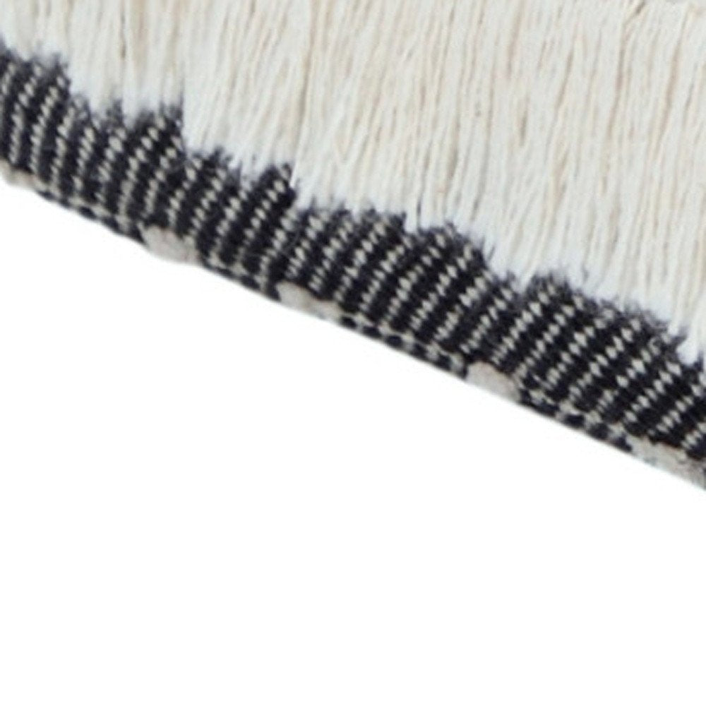 Optimize your space and add some charm to your room with the 18-inch white cotton striped pouf ottoman. Add chic style to your space with this fun pouf that not only looks cool but can be a great foot rest or extra seat when needed. Expertly upholstered with padding and soft 100% cotton in a striped pattern, this ottoman is as comfortable as it is good looking. Ottomans are multi-functional additions to your space that add fashion and practical value. 14-inch h x 18-inch w x 18-inch d.