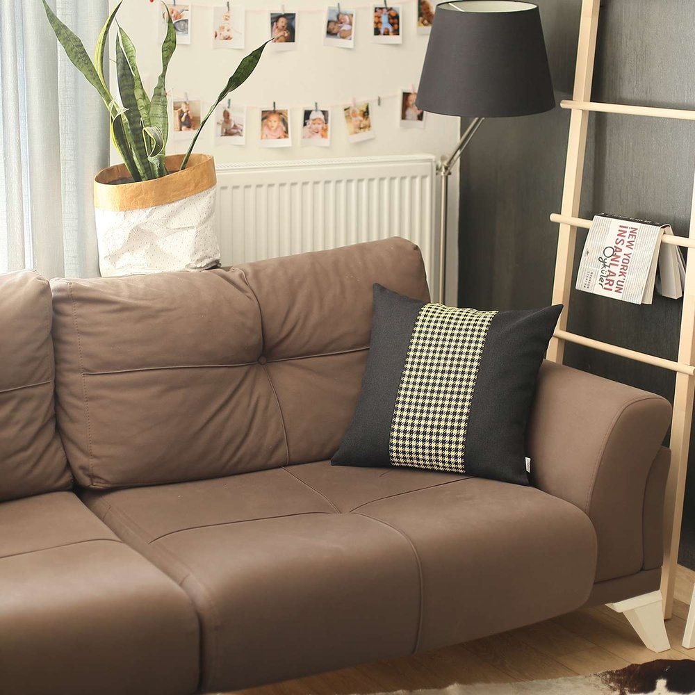 The 18" x 18" black and yellow houndstooth zippered handmade polyester throw pillow cover is the perfect decorative accessory for your home. This black and yellow colored decorative pillow cover is made from high grade polyester that is durable and long lasting. Decorative throw pillows not only add color and dimension to your space but can be comfy and supportive when you are lounging and cuddling as well. A great decorative accessory for your favorite chair, to accent your sofa, or to use as part of your bed ensemble. 0.1" H x 18" W x 18" D