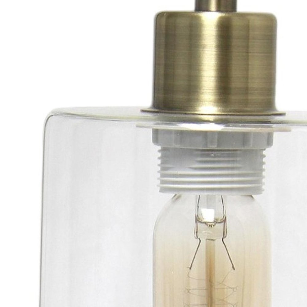Add a bright anchor to your room with this 19-inch antiqued brass metal lantern table lamp with clear cylinder shade. The lamp is made of sturdy metal and features a antiqued brass color. The clear cylinder glass shade is finishes this piece off nicely and symmetrically this standard table lamp is designed to provide general lighting to the area. Use this lamp anywhere and elevate the look of the whole space. The perfect lamp to create just the right natural and soothing light in your space. 18.80-inch h x 5.75-inch w x 9.75-inch d.