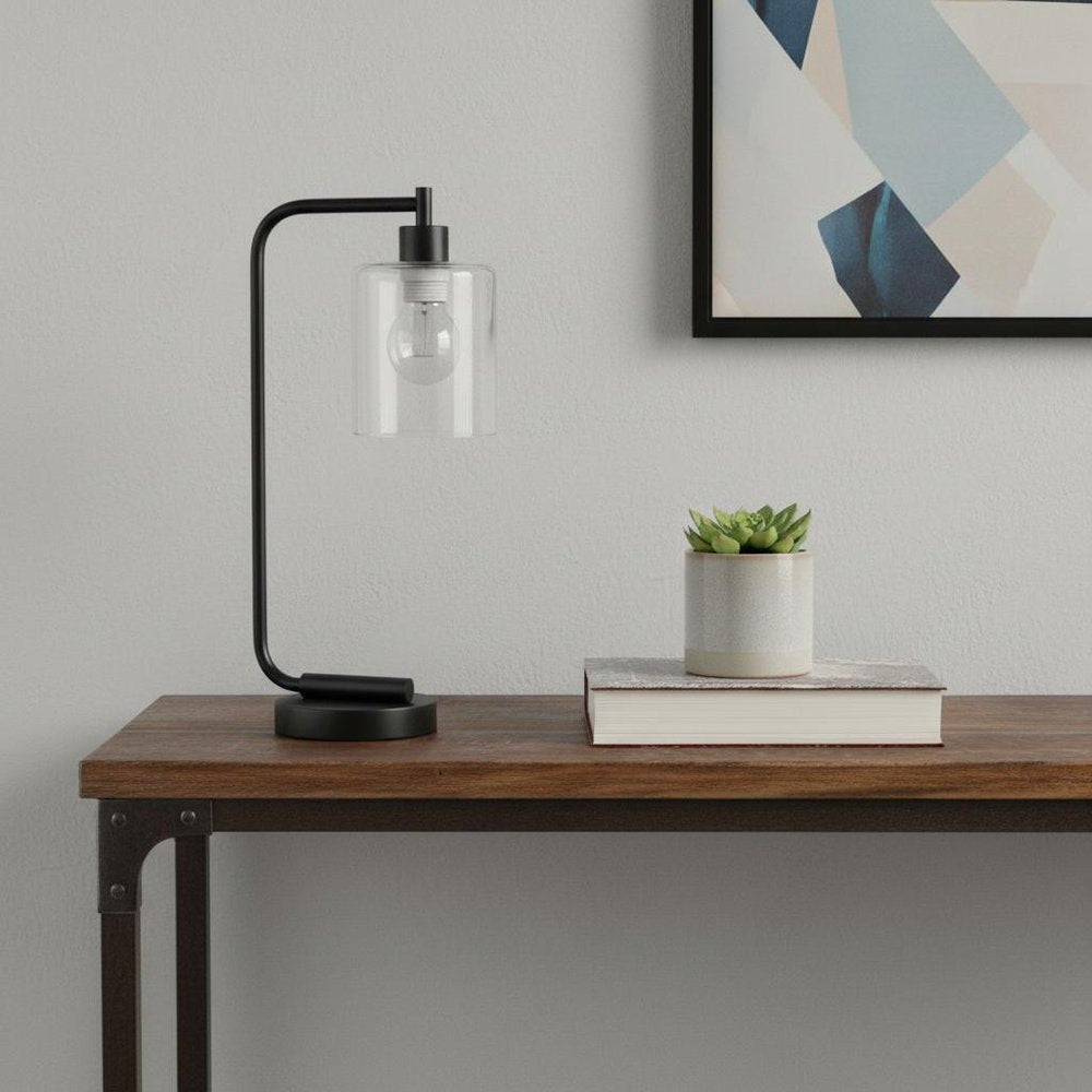 Embrace the good life with this hard working and stylish 19-inch black iron lantern table lamp led with clear cylinder shade. The lamp is made of sturdy iron and features a black color. The clear shade has a cylinder shape and is made from glass. This standard table lamp is designed to provide general lighting to the area. The light that this lamp throws is soft and warm to elevate the look of most any space in your home. The perfect lamp to create just the right natural and soothing light in your space. 18.80-inch h x 5.75-inch w x 9.75-inch d.