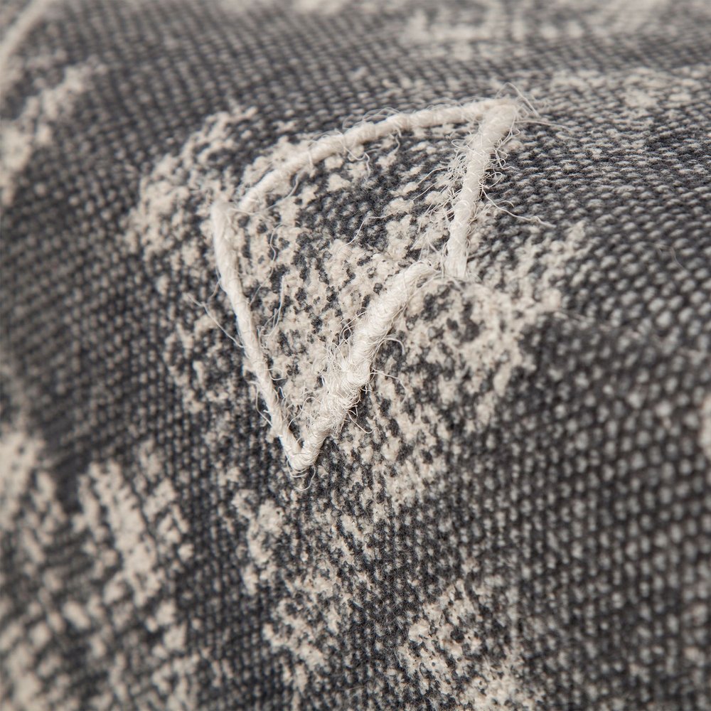 19" Gray Cotton and Brown Cube Ottoman