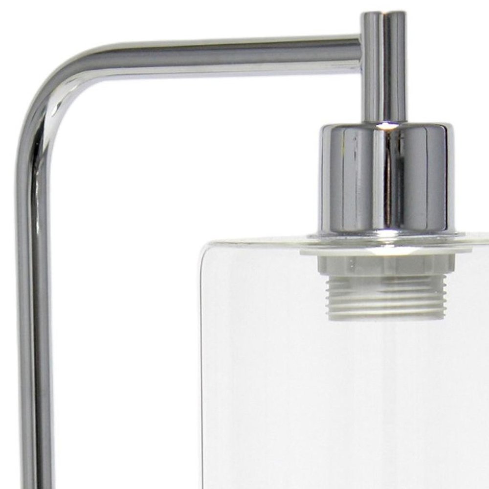 This 19-inch silver iron lantern usb table lamp led with clear cylinder shade is a great way to add some brightness to any corner of your home. The lamp is made of sturdy iron and features a silver color. The clear cylinder glass shade is a great compliment to this lamp. This standard table lamp is designed to provide general lighting to the area. The light that this lamp throws is soft and warm to elevate the look of most any space in your home. Bring some lite and good vibes into your space with this updated and stylishly designed lamp. 18.80-inch h x 5.75-inch w x 9.75-inch d.