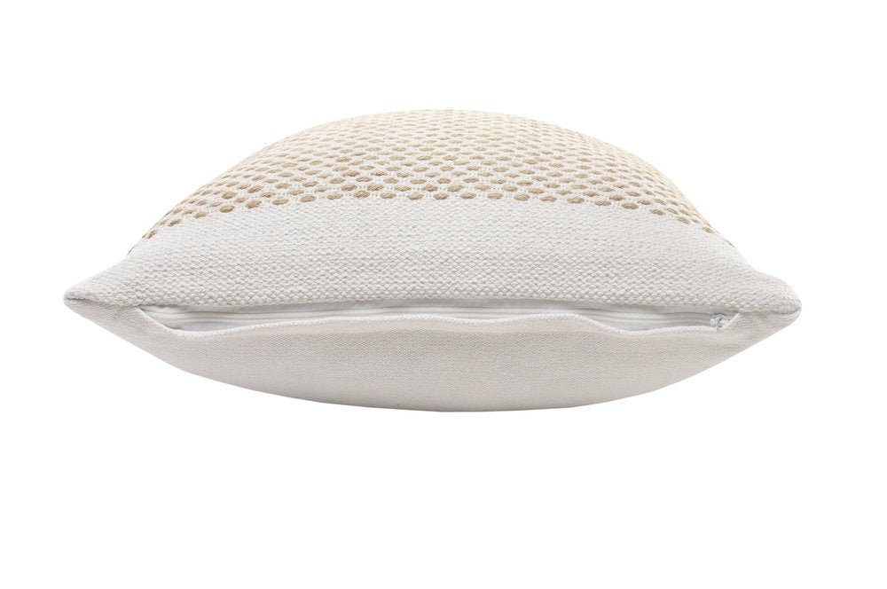 This 20-inch beige and white geometric cotton blend throw pillow cover will add a beautiful decorative accent to your decor. The beige and white coloring of the extremely durable and long lasting cotton blend pillow cover will add dimension and texture to your space. Decorative pillow covers are a great way to change up the look and feel of your space easily and quickly. Combine with your own fill or insert to add decoration and dimension to your favorite chair, accent your sofa, or to use as part of your bed ensemble. 20.00-inch h x 20.00-inch w x 0.25-inch d.