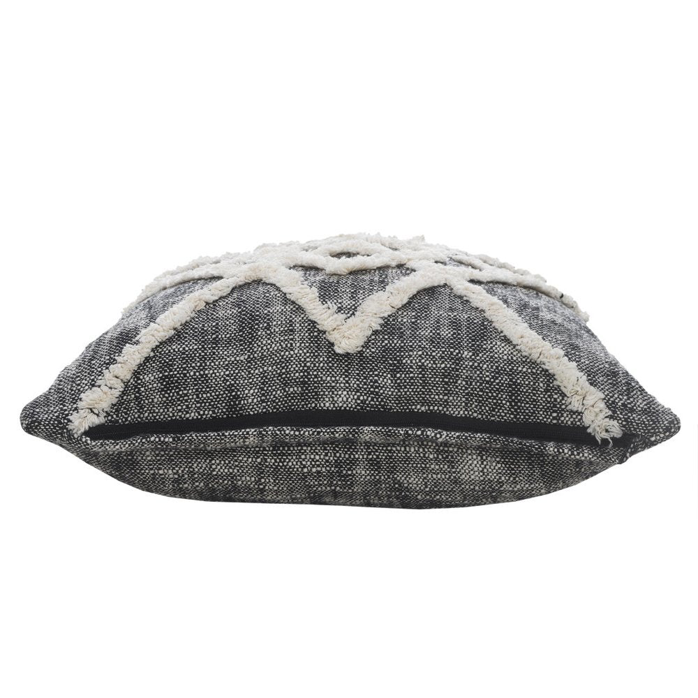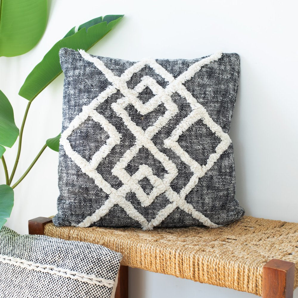 The perfect complement to your sofa, favorite chair, or bed, this 20-inch black and cream geometric cotton throw pillow cover is a great decorative accent. This soft and durable decorative pillow cover is expertly made of high grade, long lasting cotton in a black and cream coloration. Decorative pillow covers are a great way to change up the look and feel of your space easily and quickly. Combine with your own fill or insert to add decoration and dimension to your favorite chair, accent your sofa, or to use as part of your bed ensemble. 20.00-inch h x 20.00-inch w x 0.50-inch d.
