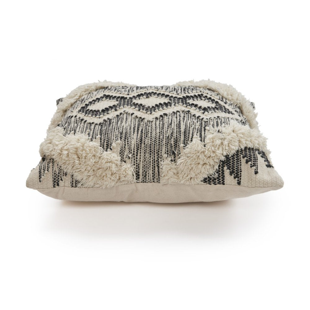 Bring a bit of fashion and zip to your space with this eye-catching and comfy 20-inch black and ivory throw pillow. This black and ivory colored decorative pillow is made from high grade cotton blend that is durable and long lasting. Super soft and built to hold its shape, this polyfill-filled pillow is a great option. Decorative pillows are a great way to change up the look and feel of your space easily and quickly. Decorative throw pillows not only add color and dimension to your space but can be comfy and supportive when you are lounging and cuddling as well. 20-inch h x 20-inch w x 4-inch d.
