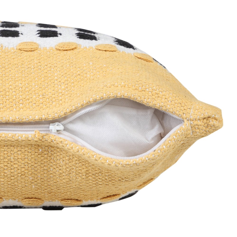The perfect complement to your sofa, favorite chair, or bed, this 14-inch x 36-inch yellow black and white cotton striped throw pillow is a great decorative accent. The yellow, black, and white coloring of the extremely durable and long lasting cotton will add dimension and texture to your space. Super soft and built to hold its shape, this polyfill-filled pillow is a great option. For anyone that loves to decorate or accent their space with color and texture. A great decorative accessory to add color and dimension to your favorite chair, accent your sofa, or to use as part of your bed ensemble. 14-inch h x 36-inch w x 7.5-inch d.