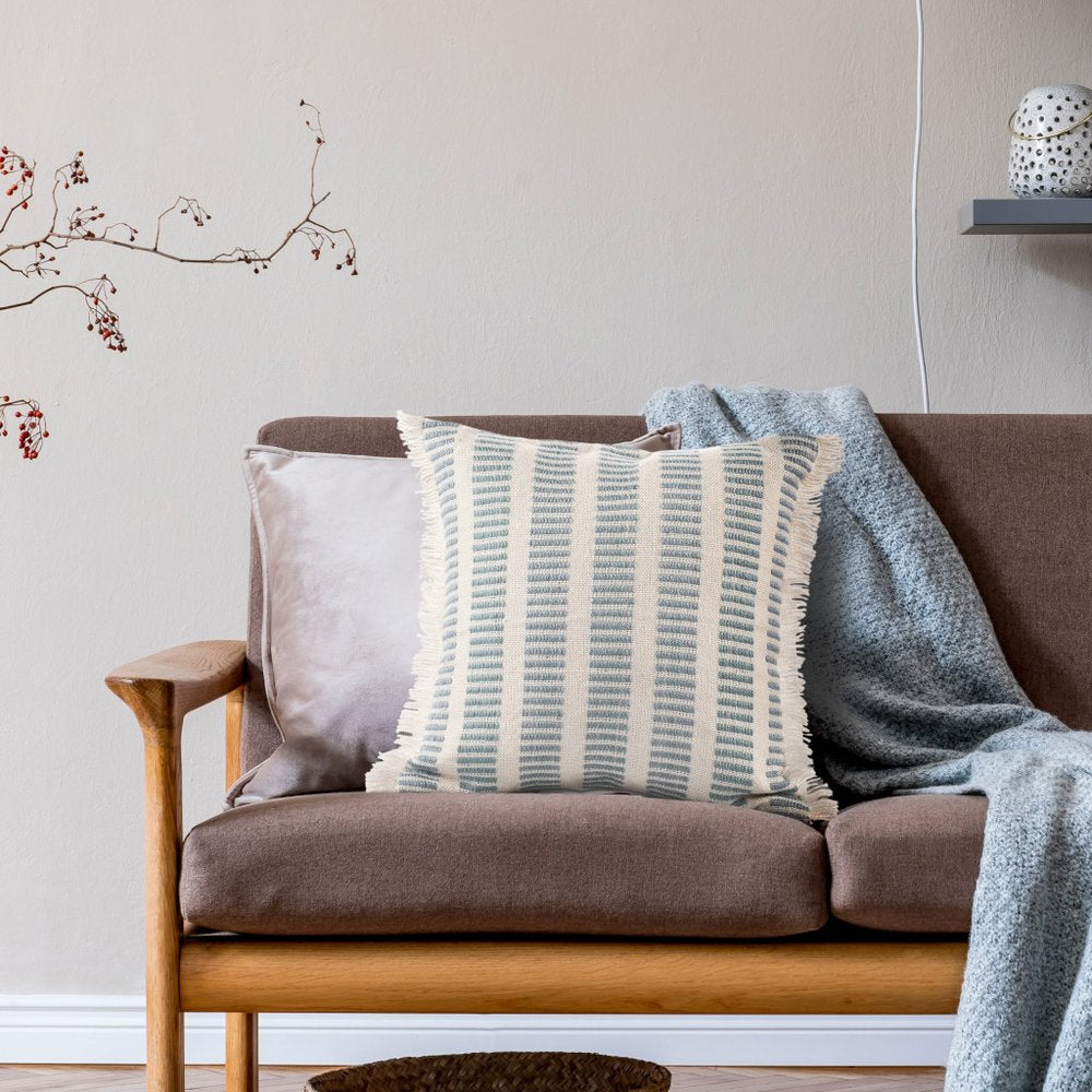 The 20-inch blue and ivory striped throw pillow cover is the perfect decorative accessory for your home. Durable blue and ivory polyester has been used to give this pillow cover a beautiful look that will stand the test of time. Pillow covers are a good idea for anyone that loves to decorate or accent their space with color and texture. Combine with your own fill or insert to add decoration and dimension to your favorite chair, accent your sofa, or to use as part of your bed ensemble. 20.00-inch h x 20.00-inch w x 0.25-inch d.
