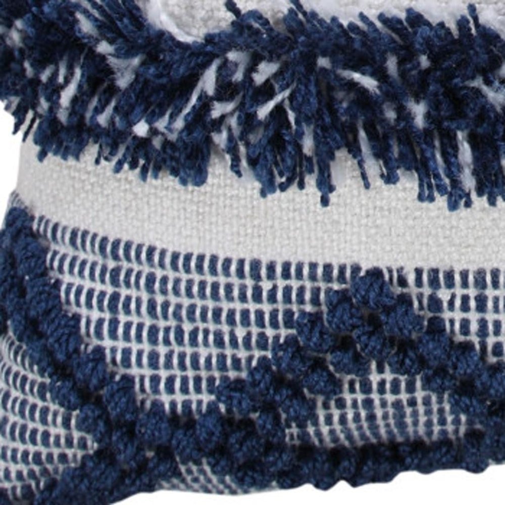 The perfect complement to your sofa, favorite chair, or bed, this 20-inch blue and white striped throw pillow cover is a great decorative accent. This soft and durable decorative pillow cover is expertly made of high grade, long lasting polyester in a blue and white coloration. Decorative pillow covers are a great way to change up the look and feel of your space easily and quickly. Combine with your own fill or insert to add decoration and dimension to your favorite chair, accent your sofa, or to use as part of your bed ensemble. 20.00-inch h x 20.00-inch w x 0.50-inch d.
