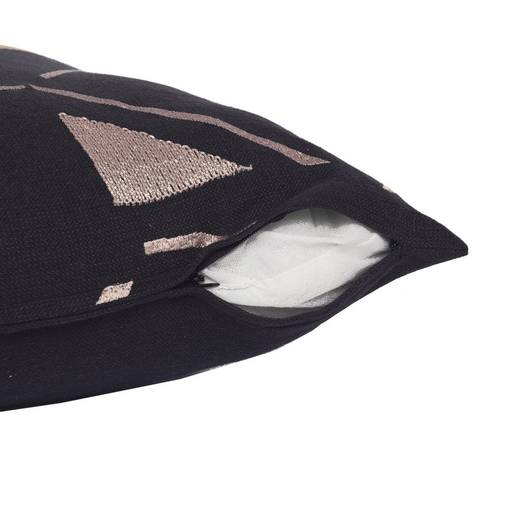 The 20-inch blue geometric cotton blend throw pillow with embroidery is the perfect decorative accessory for your home. Durable blue cotton blend has been used to give this pillow a beautiful look that will stand the test of time. This soft polyfill filled pillow not only is decorative but made to be comfy and cozy all day long. Great to use on its own or mix with other decorations for the perfect look. Decorative pillows are a great way to change up the look and feel of your space easily and quickly. 20-inch H x 20-inch W x 8-inch D