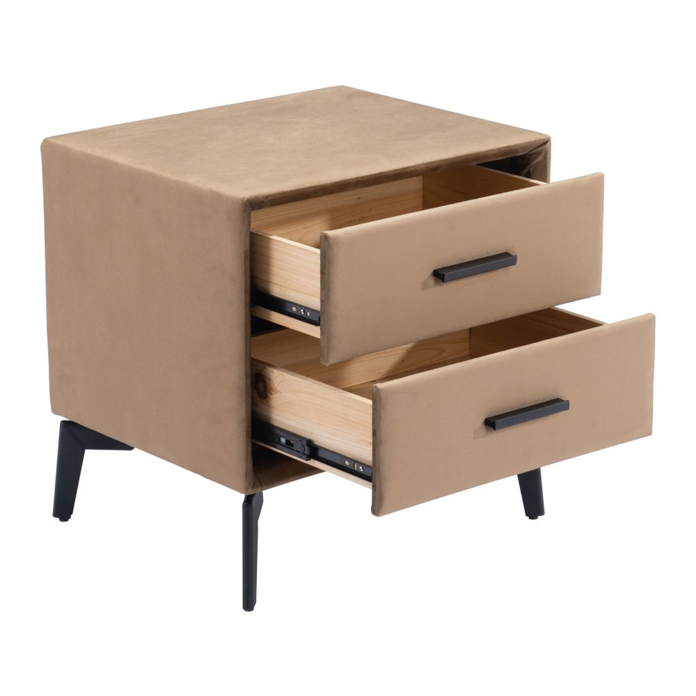 Optimize your space and add some charm to your room with the 20-inch brown and black velvet wood and steel end table with two drawers. Quality construction from the black manufactured wood and steel base combines with brown velvet of the top to give this table a fresh and updated look. Includes 2 easy open drawers for storage of the small essentials. An ideal location for placing your snacks and drinks, and a place to keep your lamp, frames, or other accessories. You can also use it as an entryway table to hold your keys. 19.7-inch h x 20-inch w x 16-inch d.