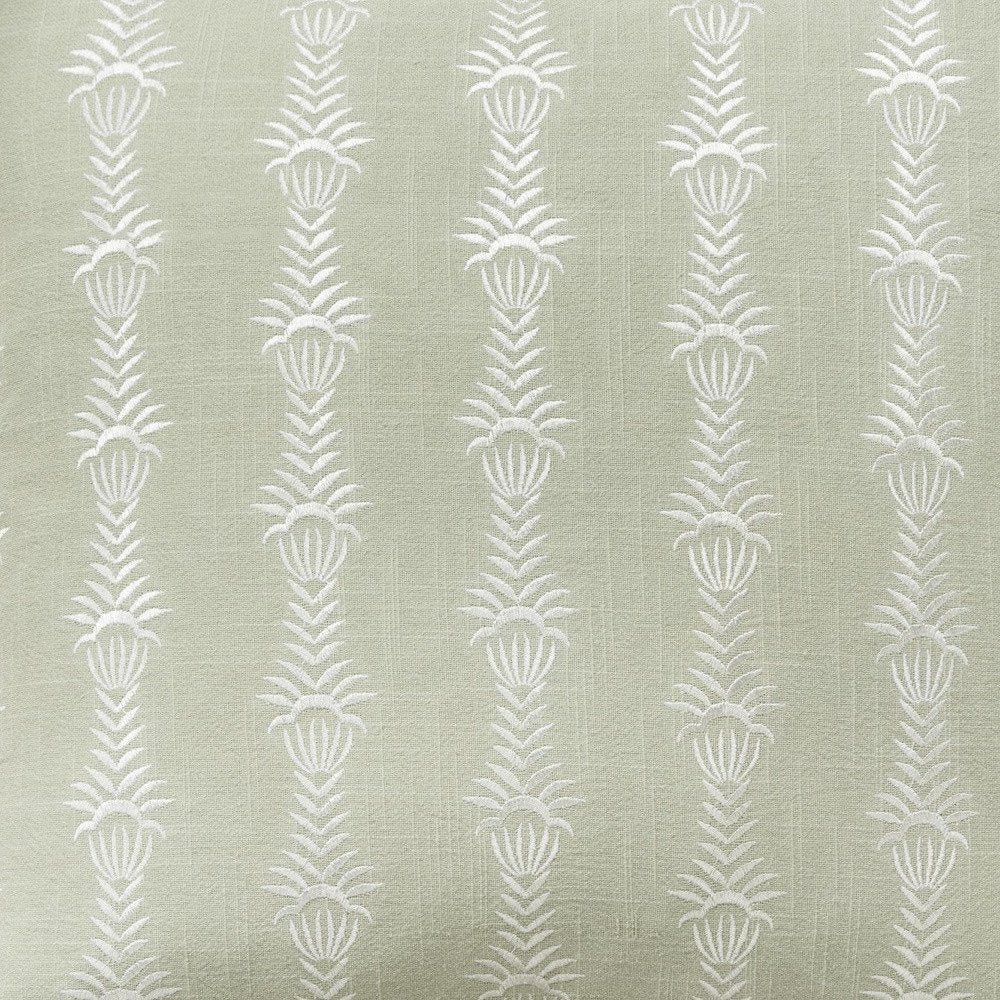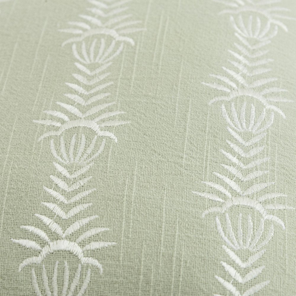 20" Green and White Cotton Throw Pillow With Embroidery