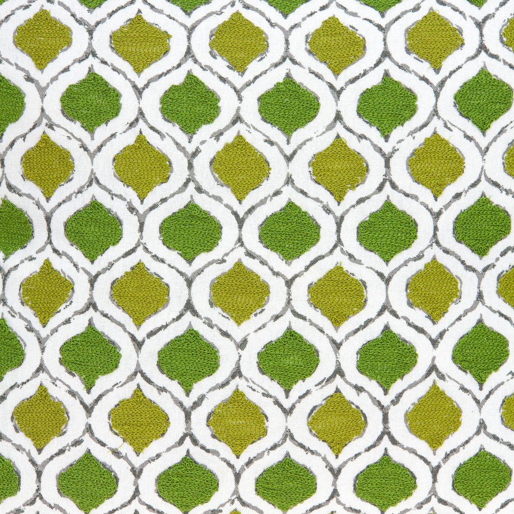 20" Green and White Ogee Cotton Throw Pillow With Embroidery