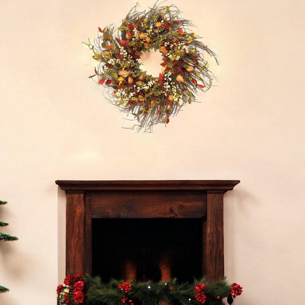 20" Green Brown And White Fall Mixed Assortment Artificial Wreath