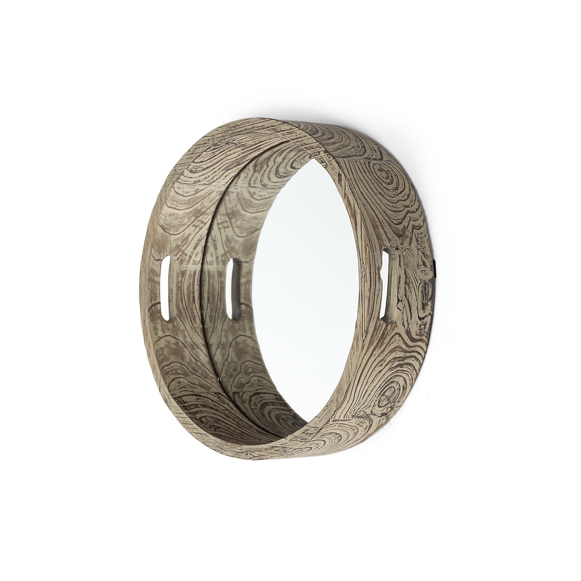 20" Light Brown Round Wood Indoor Outdoor Serving Tray With Handles