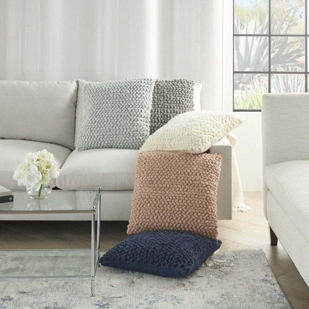 Super soft and cuddly this Curly Loops Light Gray Wool Cotton Blend Throw Pillow is a great way to accent your bed, sofa, or chair. This solid color pillow has hand-spun thin yarn loops on the front to create a comforting and textural feel. The solid color back includes a hidden zipper closure for convenience. Generous in size, this solid color decorative throw pillow is a great way to accent your decor. 20" x 20"