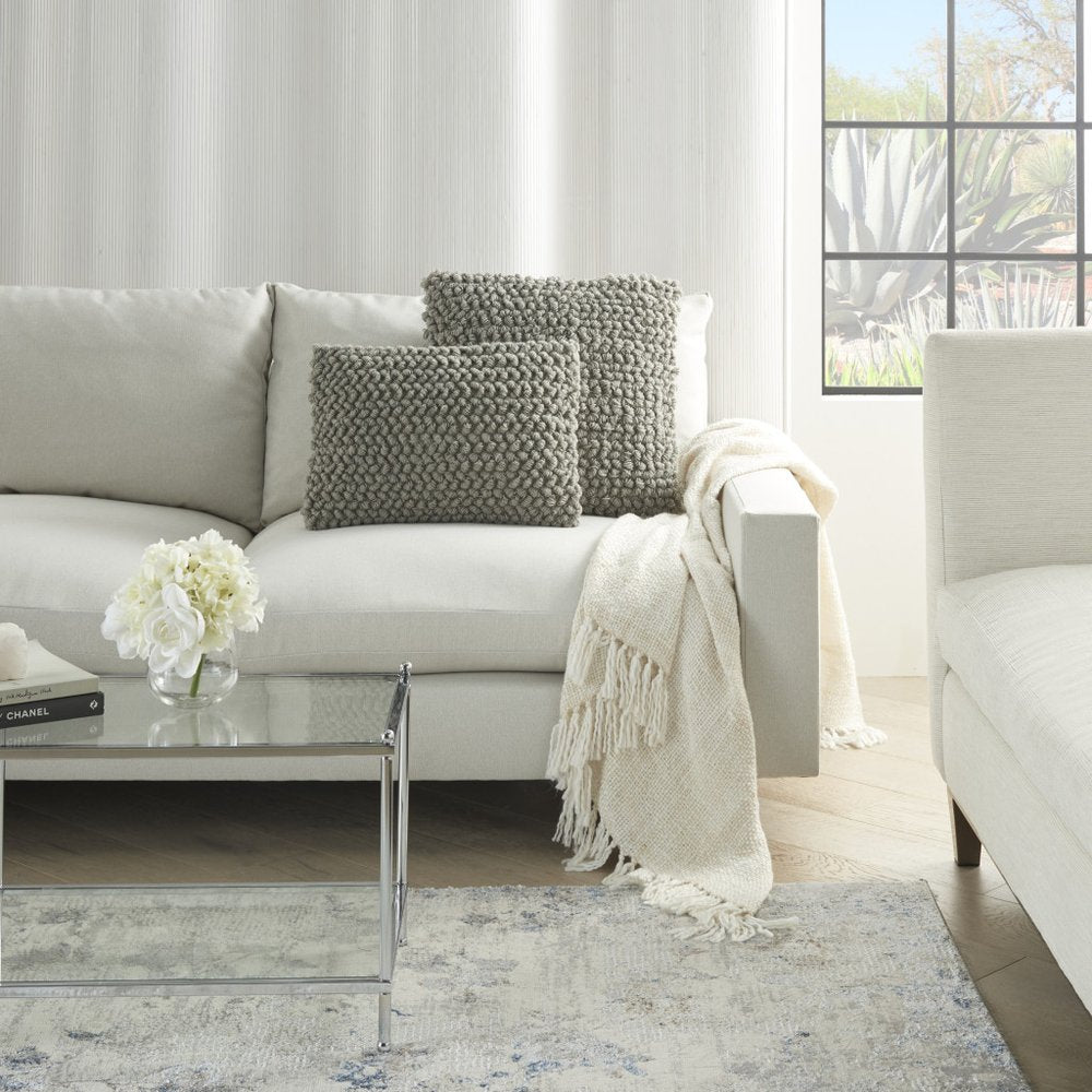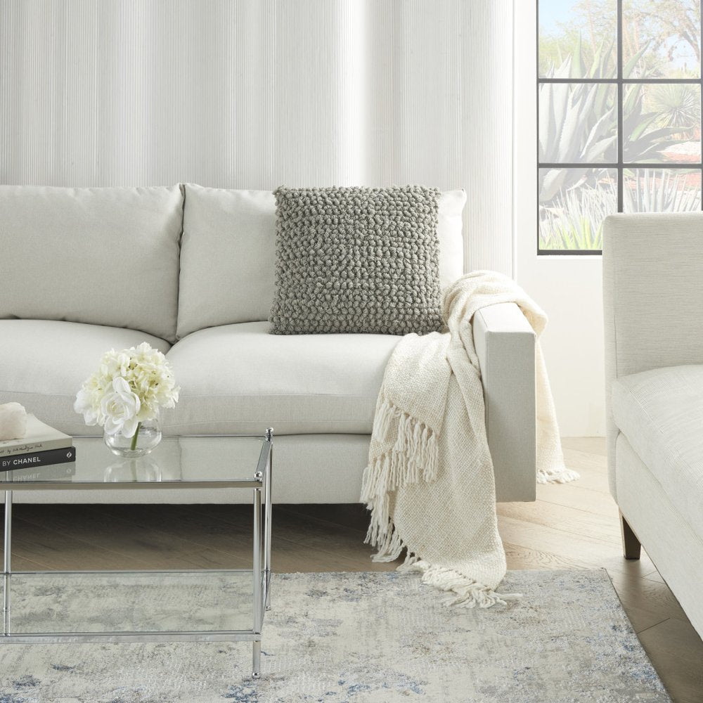 20" Light Gray Cotton Blend Curly Loops Throw Pillow