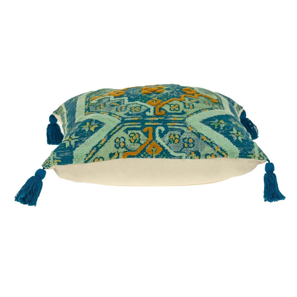This 20-inch multicolor cotton blend throw pillow will add a beautiful decorative accent to your decor. Durable multicolor cotton blend has been used to give this pillow a beautiful look that will stand the test of time. Super soft and built to hold its shape, this polyester pillow is a great option. For anyone that loves to decorate or accent their space with color and texture. A great decorative accessory for your favorite chair, to accent your sofa, or to use as part of your bed ensemble. 20-inch H x 20-inch W x 4-inch D